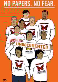 Poster by artist and UndocuBus Rider, Julio Salgado. Poster is of the 10 civil disobedience action participants at the 2012 Democratic National Convention in Charlotte, NC.